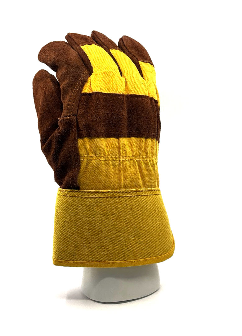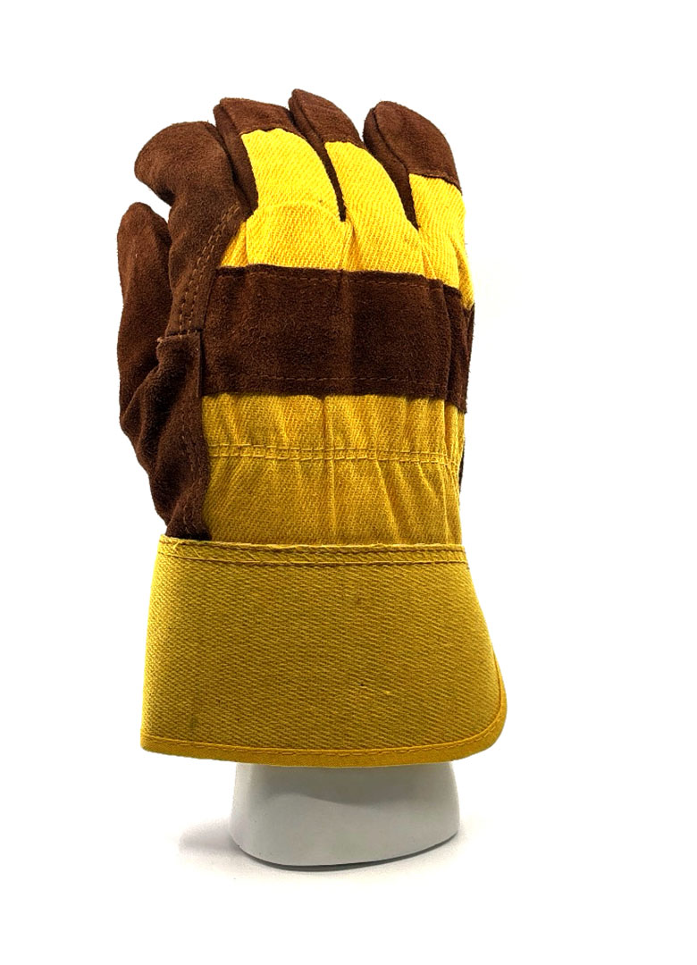 Dos de la main en coton avec bande des jointures en cuir refendu